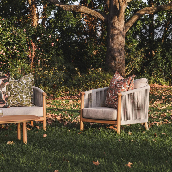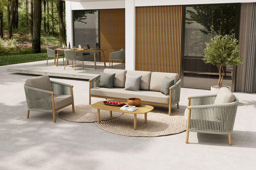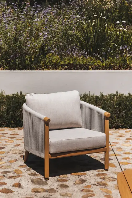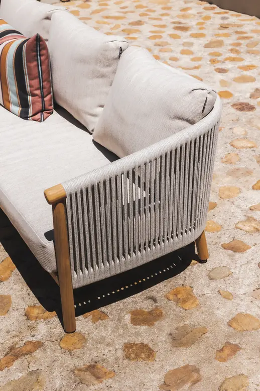La colección Isola está inspirada en la belleza natural, con cada pieza diseñada para ofrecer una experiencia única al aire libre. La combinación de materiales nobles, como el suave tejido de cuerda y las cálidas tonalidades de la teca, junto con los cómodos cojines, crea un ambiente sofisticado y acogedor.